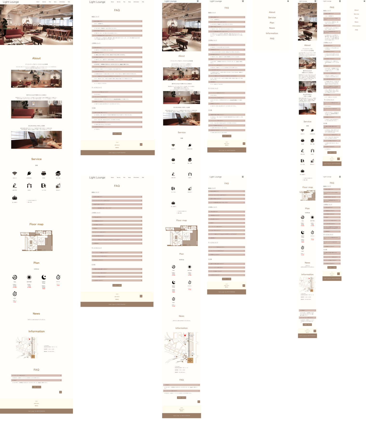 分析によって、クライアントには『利用料金の低さ』と『充実した設備』を兼ね備えてい点、『ゆっくりとできる開放感のあるスペース』があるといった強みを洗い出す事ができました。一方、競合他社にはゆっくりとできる開放感はないと調査の結果、判明致しました。クライアントの強みと、競合の弱み、そこに、ターゲットとなるユーザーの特徴をデザインに落とし込んだデザインになっております。女性はロゴや写真で物事を理解する傾向があるため、できるだけ、文章を避けます。また、背景色を統一する事、余白を工夫するで開放感もアピールする事ができました。